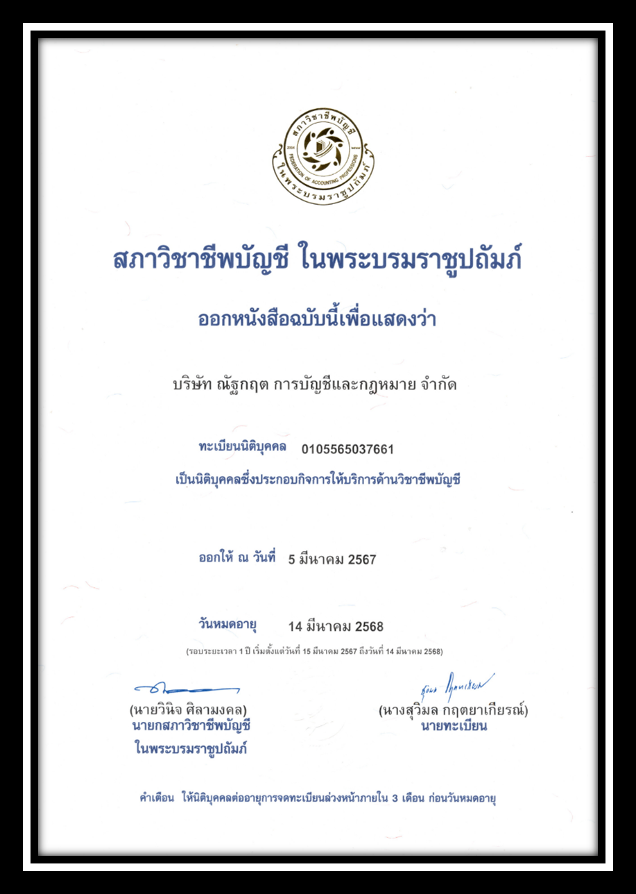 - ตรวจสอบและจัดทำงบดุล-กำไรขาดทุน สิ้นปีด้วยผู้สอบ CPA ตามมาตราฐานการสอบบัญชี